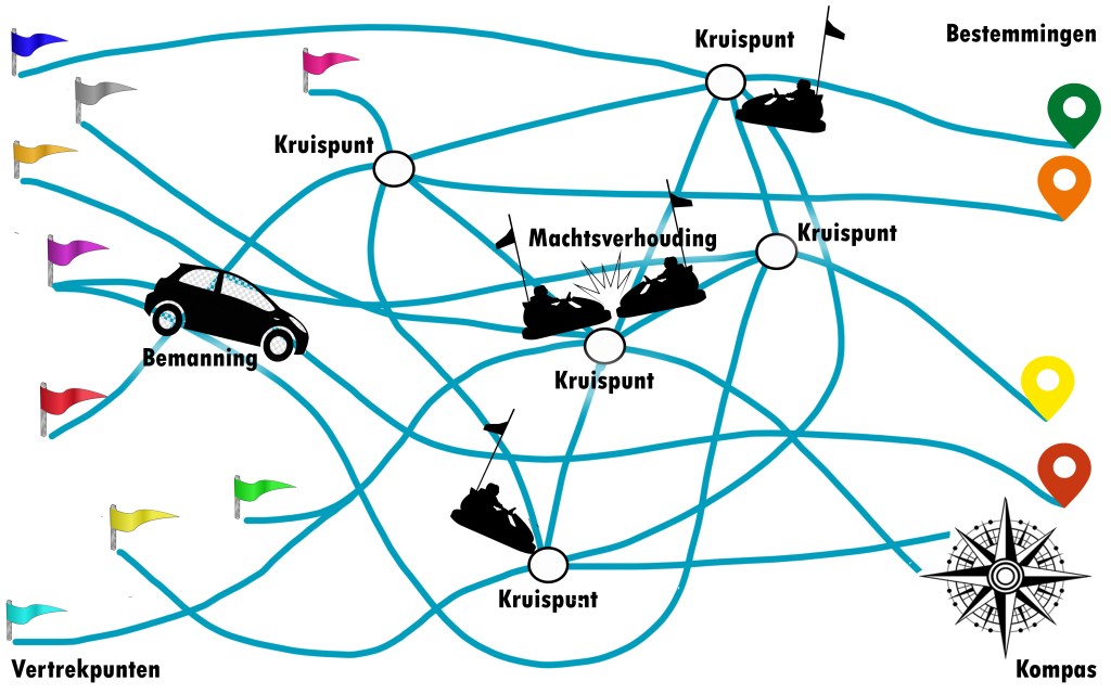Figuur 5. Opbouwen routekaart met de vertrekpunten, cruciale kruispunten, de bemanning en machtsverhoudingen