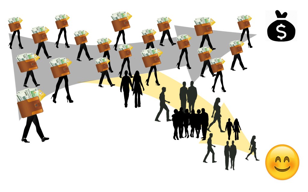 De vraag is welke luchtkastelen we in brand gaan steken en welke niet. Wát willen we anders? Het afbreken van luchtkastelen is een metafoor voor wát we anders kunnen doen. Het wát is in essentie te vatten in de beweging van geld naar mensen. De meesten van ons willen een samenleving die minder gericht is op rijkdom en welvaart en meer gericht is op geluk en plezier. Een samenleving waarin de mens centraal staat en mag zijn wie het is met alle imperfecties en eigenaardigheden. Geen samenleving waarin we als wandelende portemonnees worden gezien.